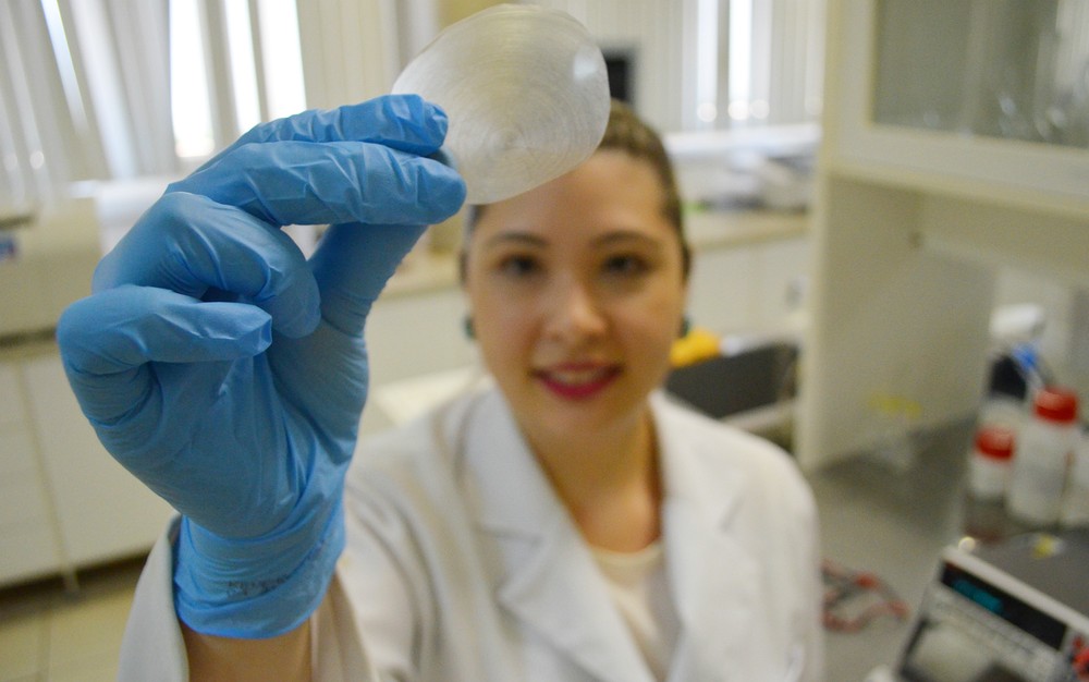 “A gente desenvolveu um [papel] filme com a fibroína retirada de casulos do bicho da seda. O filme é como se fosse uma membrana, que protege a ferida, e nós encapsulamos nesse filme um peptídeo que pode ajudar a ferida a fechar”, explica Renata.